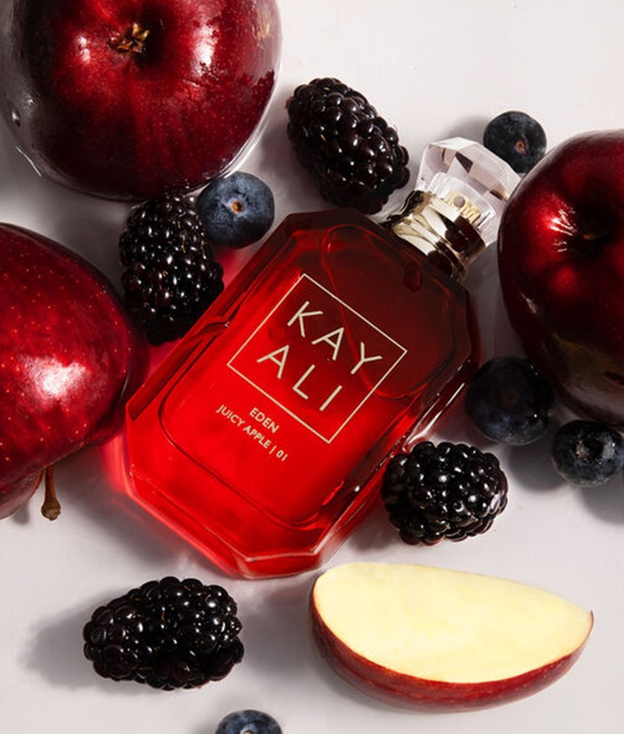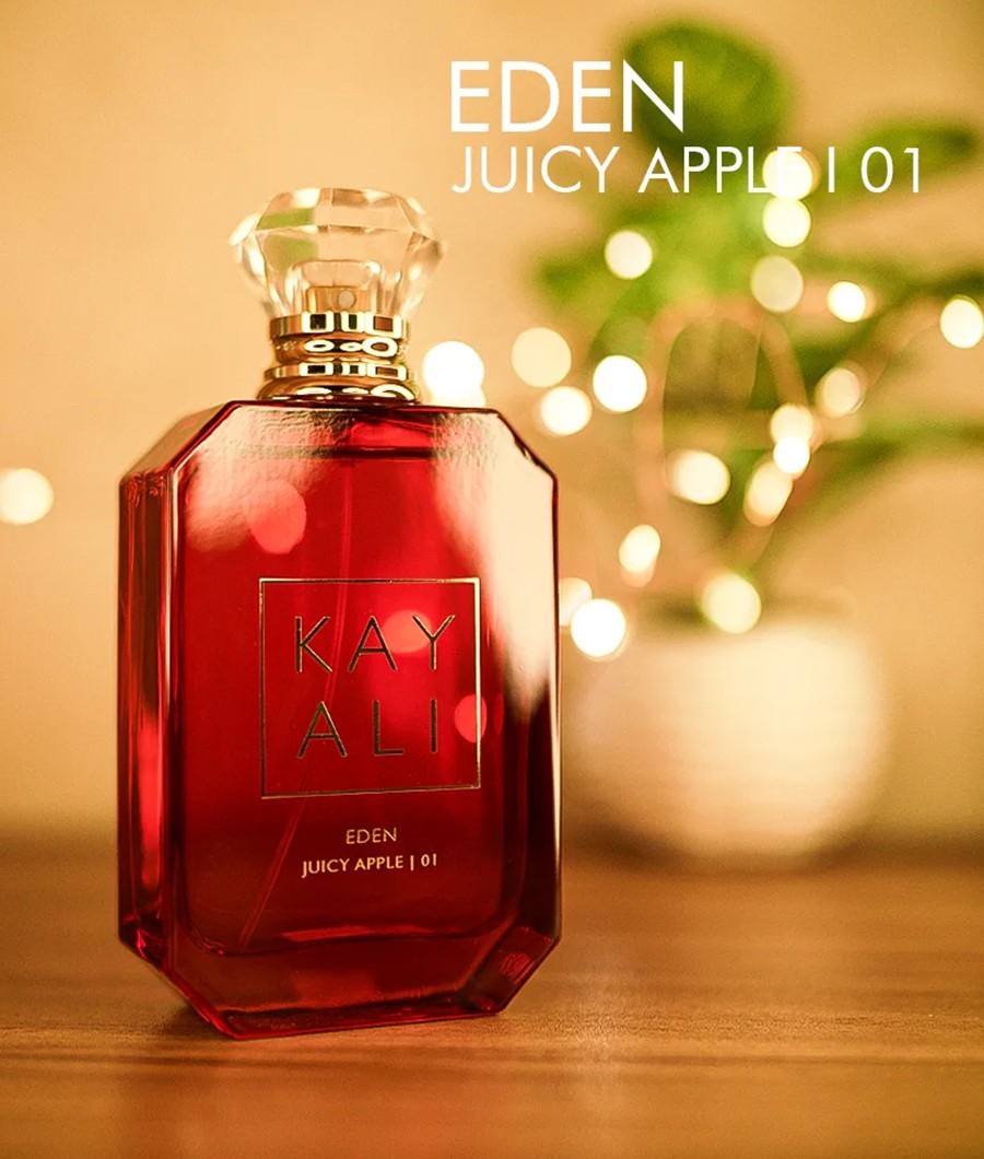 Kayali Eden Juicy Apple | 01 EDP, sulu kırmızı elmanın canlı enerjisini yabani meyvelerin ekşi-tatlı özgürlüğüyle ve jasmin ile gülün çiçeksi tazeliğiyle harmanlayan neşeli bir meyve-çiçeksi parfümdür. Vanilya çiçeği ve miskin sıcak tabanıyla ilkbahar ve yaz günlerinde kalıcı bir taze iz bırakıyor.